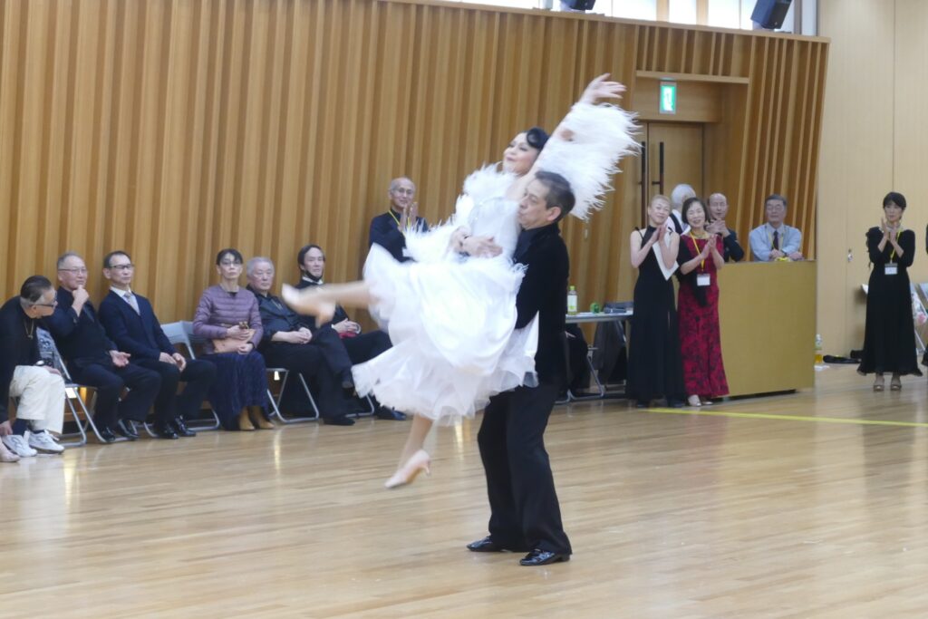 フリーダンス、パートナーチェンジ、アテンダントとのミニデモ、申し込みタイム、アメリカンスムースのデモ、コンペスタイルデモなど、楽しいプログラムが満載で、参加の皆様は大変満足されたことと思います。